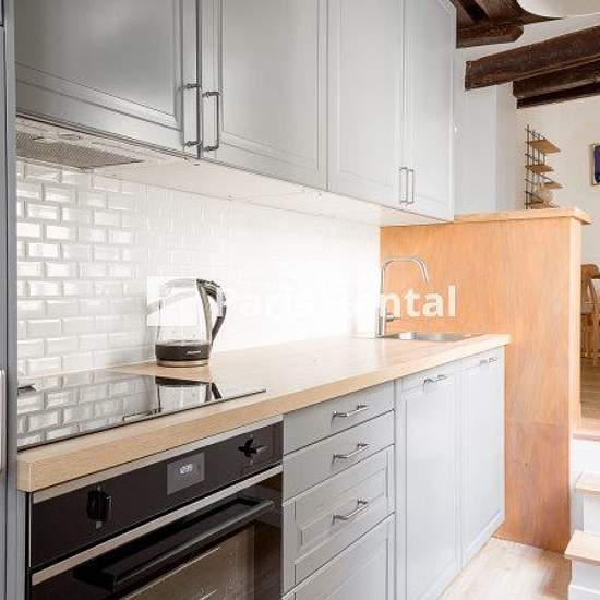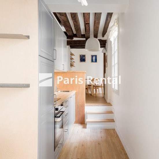 Appartement n° 61515Pas de colocationCet appartement meublé de 35 m² comprend une chambre, une salle de bains et un wc. Il est situé rue Quincampoix dans le quartier branché du Marais dans le 4ème arrondissement de Paris , tout près du Centre Pompidou. L'appartement est au 1er étage d'un immeuble du 19ème siècle sans ascenseur mais facilement accessible par ascenseur , il dispose d'une cuisine entièrement équipée (four, lave-vaisselle, micro-ondes), de parquet, de lumière naturelle, de doubles vitrages, d'un mobilier contemporain et de poutr...