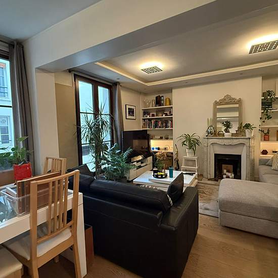 Ideally located in the heart of the historic Marais, a stone's throw from the Saint-Paul metro, local shops, galleries and the neighborhood's emblematic addresses, this apartment enjoys a particularly sought-after location. On the fourth floor overlooking the courtyard of a well-maintained older building (no elevator), this charming 55 m² apartment offers peace and comfort. It is laid out as follows: an entrance, a pleasant double living room, an open-plan kitchen fully fitted and equipped, a shower room and a separate WC. The apartment is i...