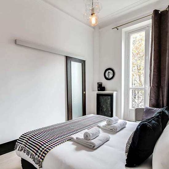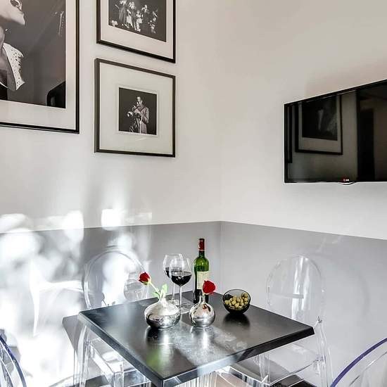 [EN] The Saint Germain II Sweett apartment is a charming one-bedroom apartment that puts you in the lively heart of Paris. Inspired by the classic beauty of black-and-white photography, our local interior designer has created a sophisticated, romantic space. Artistic prints line the walls, vintage-chic furniture fills the rooms, and flowing drapery adds a gentle touch. A picture window overlooks the City of Lights. A fully equipped kitchen has everything you need for gourmet cooking. Nestled in the charming Saint-Germain-des-Prés neighbourho...