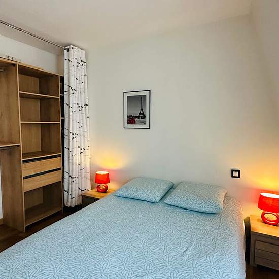 Through apartment in good overall condition located on the 6th floor (no elevator) of an old building, 33 m² on the floor, 30 m² (Carrez). It comprises a living room with sofa, parquet flooring, TV, and an open kitchen equipped with a dishwasher, hob, extractor hood and microwave; a bright adjoining bedroom with a double bed and a dressing. A modern shower room with washing machine. Individual electric heating and hot water. Air conditioner. EOM fee 15 euros/month included. Guarantors required. For a single person or a couple. No flatshares.