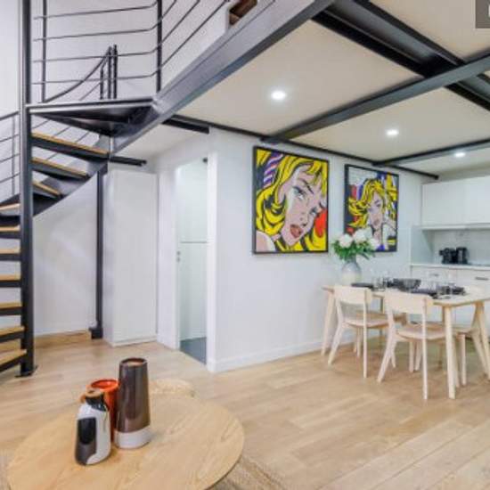 Superbe duplex de 62m2 dans le 7eme arrondissement de Paris, emplacement idéal proche de l'esplanade des Invalides et du Quai d'Orsay ! Il s'agit d'un appartement situé au rez-de-chaussée. L'appartement se trouve à 3 minutes à pied du Musée d'Orsay, et 10 minutes à pied de l'esplanade des Invalides. Il se compose de: - Une cuisine, équipée et fonctionnelle à l'étage: frigidaire, plaques de cuisson, machine à café, grille-pain, bouilloire, micro-ondes, four, lave vaisselle ... - Un salon avec un canapé convertible, table à manger et TV - Une ...