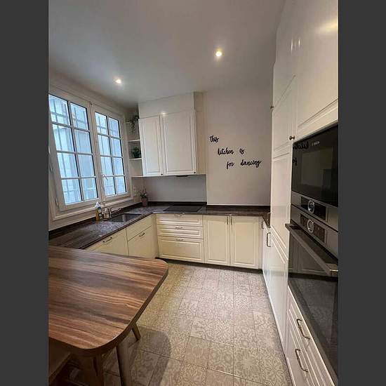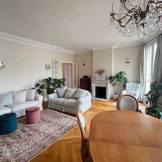Chic two-bedroom rental apartment in the 8th arrondissement of Paris on Rue du Faubourg Saint-Honoré near Place des Ternes. The residence is well furnished and recently renovated, situated on the 4th floor of a Haussmann-style building with an elevator. Size of the apartment is 93 square meters; full of natural light. The building was constructed in 1900 and features classic Parisian architecture. The living room is spacious and bright, with elegant furniture, leads to a long balcony. There are two bedrooms, each well-appointed for restfu...