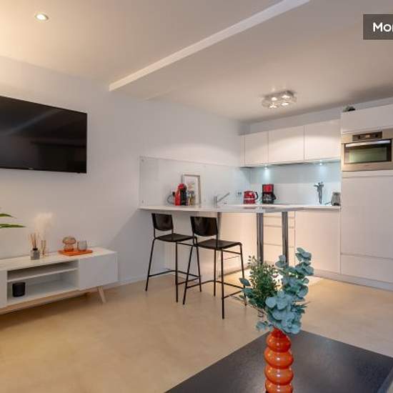 Situated on the first floor in a hidden courtyard, this charming apartment offers calm, comfort, and a truly local Parisian experience. The apartment has no elevator, and guests must climb a few steps before reaching the building. Inside, you’ll find a spacious living room featuring a comfortable sofa bed, a Smart TV, and a bright open layout. The open kitchen is fully equipped and generously sized, offering everything you need to cook. A corridor leads to the renovated bathroom, designed with modern comfort in mind and featuring a large wal...