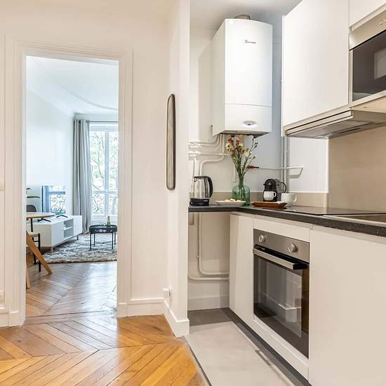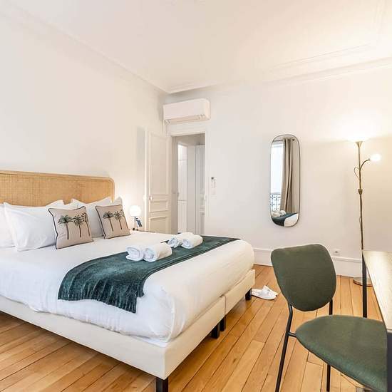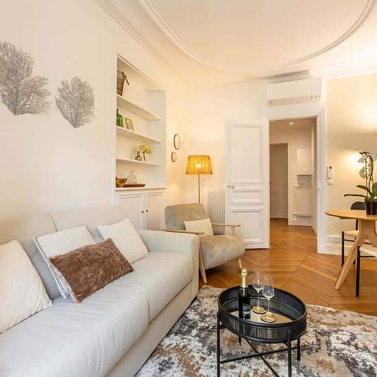 [EN] The stylish Sweett Wagram Deluxe IV apartment is located in the very centre of Paris, only a few steps away from the Arc de Triomphe. Our local interior designer has carefully decorated this cosy one-bedroom to reflect the French glamour, you will especially appreciate the attention to detail and elegant furniture. The fully equipped kitchen is perfect for cooking a meal and the high-quality mattresses ensure you a great night’s sleep. Located In the 8th arrondissement, you'll find the tree-lined Boulevard Haussmann just a few steps awa...