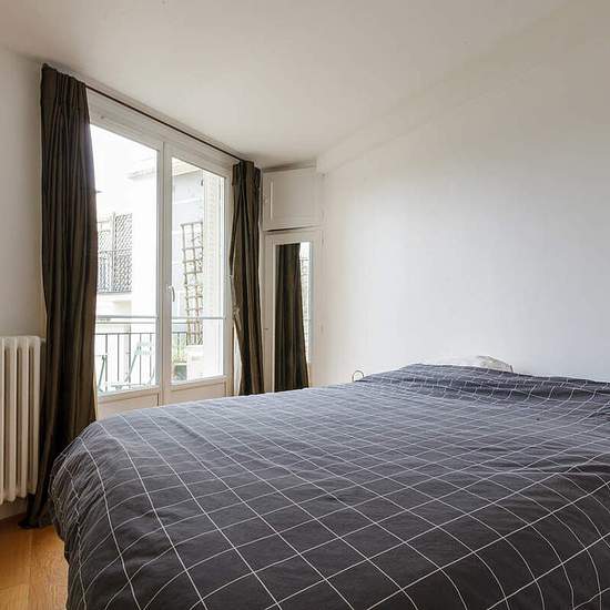 2-bedroom apartment for rent at Rue Alfred de Vigny in the 8th arrondissement of Paris. This is a bright, attractive, perfectly furnished residence in a very nice neighborhood of the French capital, which will be a good option for long-term accommodation for a family with children. Surface - 58 square meters; 5th floor of a building; terrace; big windows. Minimum rental period - one month; number of tenants - up to six persons. Layout: the living room with a sofa, a table, TV, a closet; two cozy bedrooms with double beds; an equipped kitc...