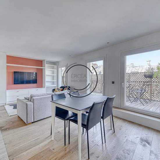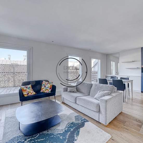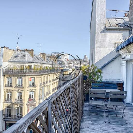 Situé idéalement rue Drouot, au cœur du faubourg Montmartre dans le 9ème arrondissement de Paris, découvrez ce magnifique appartement meublé de 55 m² entièrement rénové avec goût et doté d'une vaste terrasse de 21 m² offrant une vue dégagée. Situé au dernier étage, l'appartement bénéficie d'une belle luminosité naturelle et d'un calme absolu. Il propose des prestations haut de gamme : cuisine équipée moderne, climatisation réversible intégrée, finitions soignées et mobilier élégant. À proximité immédiate des commerces, restaurants, théâtres ...