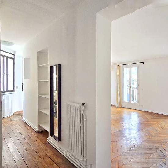 Unfurnished rental — Civil Code lease. Quod et Associes offers you, within a Haussmann-style building, on the 5th floor with elevator, a two-room apartment of 56 m². The apartment comprises an entrance hall, a living room with fireplace giving access to a balcony running along the façade, an independent furnished and equipped kitchen, a bedroom with storage, and a bathroom with WC. Individual gas heating and hot water. Available from December 10. Fees for Civil Code lease: 15% of the annual rent.