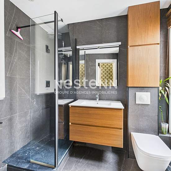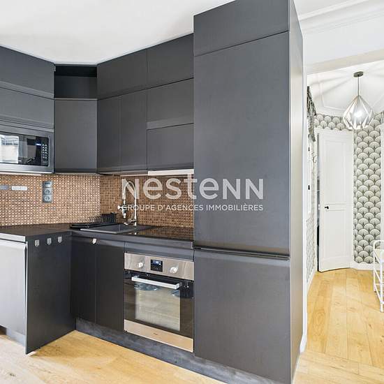 Dans une rue Calme récemment aménagée en sens unique et arborée située en toute proximité de la Gare du Nord, NESTENN PARIS 19 et MONTMARTRE vous propose ce beau deux pièces loué MEUBLE en très bon état avec des équipements récents. Au cinquième étage avec ascenseur d'une belle copropriété parfaitement entretenue et sécurisée, il comprend une entrée, un cagibis avec une machine à laver séchante , une salle de douche et les water-closets , une cuisine semi ouverte aménagée et équipée , une chambre au calme sur cour avec de grands rangements e...