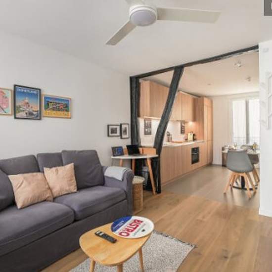 Découvrez cet appartement récemment rénové de 34 m², niché dans une cour calme, au premier étage sans ascenseur, pouvant accueillir jusqu'à 2 personnes. Avec une surface de 34 m², cette location se compose de : - une belle pièce de vie avec salon et salle à manger, - une cuisine parfaitement équipée (machine à café, bouilloire, four, four micro-ondes, plaques de cuisson, lave-vaisselle, réfrigérateur, congélateur), - une chambre avec un lit double 140 × 200 cm et une salle de bain attenante avec douche et WC, - bureau de travail, - aspirateu...