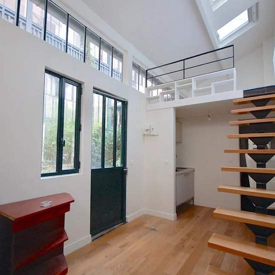 * Boulevard Raspail - Dans la cour d'un bel immeuble, véritable atelier rénové : salon, coin cuisine équipée, grande salle de douches avec WC, et à l'étage, une chambre mansardée en mezzanine. . À quelques pas de la Fondation Cartier et de Denfert Rochereau. Loyer : 990EUR/MOIS charges comprises (40EUR). Surface au sol : 25m2 - Surface "Loi Carrez" = 20,14m2 *** VISITES UNIQUEMENT SUR RDV À FIXER PAR TÉLÉPHONE ***