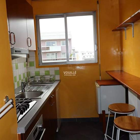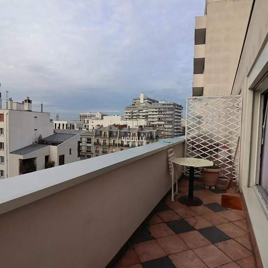 Nous avons un coup de coeur pour ce bel appartement de 2 pièces principales, très agréable à vivre, que nous louons en meublé. Il se situe dans un immeuble récent "années 1970" de bon standing, au neuvième et dernier étage. il est doté d'un très bon plan avec une entrée avec placard, une cuisine, un séjour exposition Ouest sur rue donnant sur un grand balcon avec une vue dégagée, une chambre sur cour exposition Est avec balcon, une salle de bain avec toilettes. La copropriété propose de nombreux services avec gardien, ascenseur, chauffage et...
