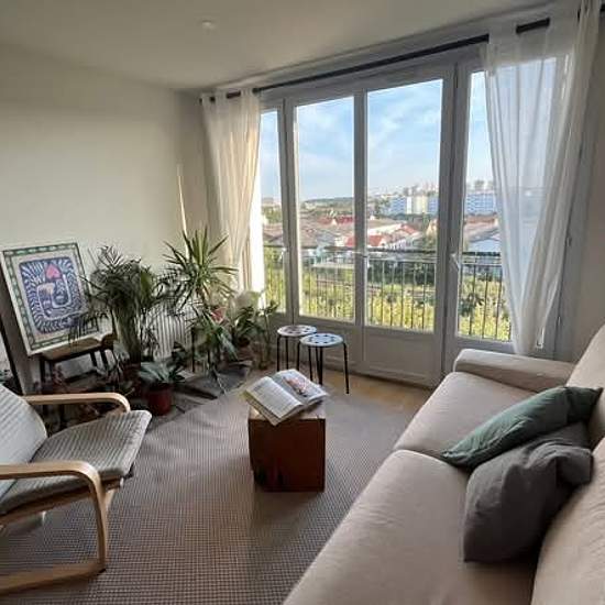 Beau T3 meublé de 56 m² entièrement équipé, situé à 8 minutes à pied du RER E dans un quartier calme Appartement lumineux, fonctionnel et idéal pour couple ou colocation Disponible mi-janvier. Plus qu’à déposer vos valises ! Au 5ème étage d’un bâtiment de 6 étage sans vis-à-vis * un grand salon lumineux traversant (très agréable pour lire ou télétravailler) * deux véritables chambres (lit Emma Queen Size / 2 lits simples jumeaux) * Une cuisine séparée et équipée (réfrigérateur, four, gazinière, machine à café, bouilloire) * Une sal...