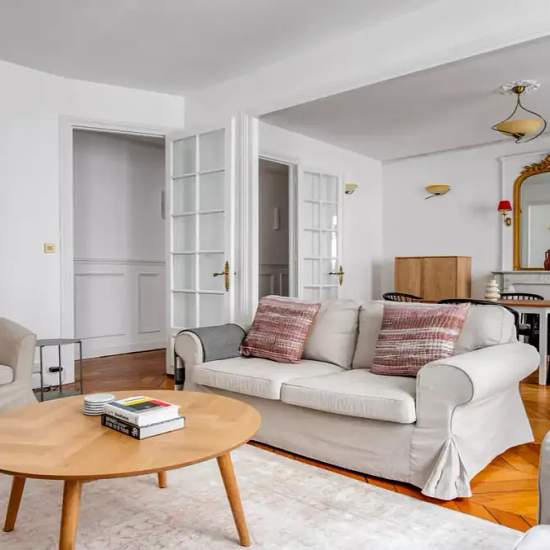 Furnished 2-bedroom apartment for rent in Paris. The property is on the 1st floor. Landlord policies Overnight guests permitted: no Pets: Some pets are allowed for some properties. Be sure to include your animal friend in your booking request in order to fin a Pet friendly property for you (extra fee) Possibility of domiciliation: no CAF/APL: no Check-in/out: Check-in hours: 16:00 - 22:00 Check-out hours: before 11:00 Required documentation: ID / Passport Your landlord speaks: French, English, German, Greek Your landlord does not live o...