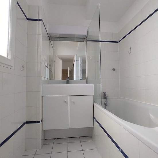 DEUX PIECES de 52,45m² coté cour intérieure au 5ème étage avec ascenseur dans un immeuble cossu au 14 rue Mesnil, proches transports et commerces. Il est composé d'une entrée avec placard, un séjour, un dégagement avec placard, une cuisine indépendante, une chambre, une salle de bains et un WC indépendant. Une cave et une place de parking en sous-sol.