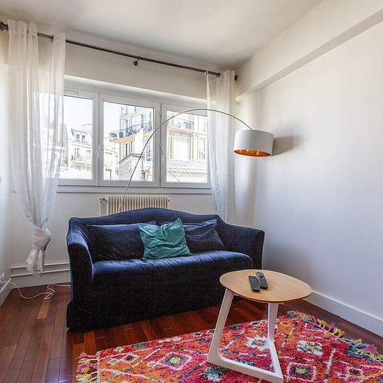 Comfortable 2-bedroom apartment for rent on Avenue de Lamballe in the 16th administrative district of Paris. This duplex flat is a great option of family housing for a long period of time in an excellent area of the French capital. Living area - 46 square metres; stylish interior; quality furnishings and home appliances; view of the Eiffel Tower. Layout: living/dining room with sofa and dining table, two double bedrooms, two bathrooms (combined with toilet). The location is sure to please the tenants of the apartment. Quiet prestigious ar...