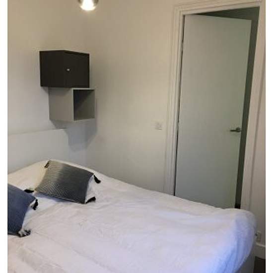 Appartement calme et clair, meublé, refait à neuf, 2 pièces au dernier étage d'un immeuble début XXème.Une chambre lit double avec placards, une salon avec bureau sur mesure et rangements , un canapé lit 1 personne. Une salle d'eau toilette et une cuisine entièrement équipée four mixte , lave-linge , réfrigérateur avec compartiment congélation, plaque à induction.