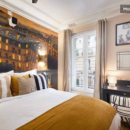 Luxury, calm and elegance just a stone's throw from Montmartre Welcome to this superb luxury furnished flat, ideally located in Jules Joffrin (18th arrondissement), just a few minutes' walk from Sacré-Cœur. This brand-new, architect-renovated 37 m² 2-room apartment is on the 1st floor of a quiet Haussmann-style building, secured by a digital code. It offers all the comforts of a 5-star hotel, in an intimate atmosphere. A typically Parisian flat to give you the full experience. ___________________________________________ Separate bedroom wort...