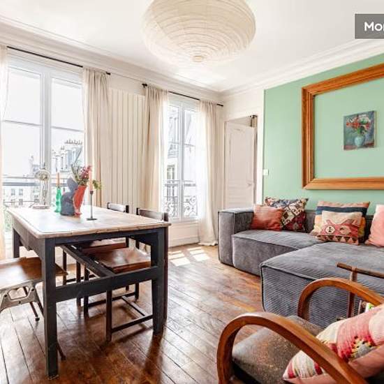-- Recently refurbished, new photos coming soon! -- Bright, quiet, artist's studio-style flat (50m²) on the 5th floor, facing south and opening onto a peaceful local vegetable garden. You'll feel right at home! Library, hi-fi system, fitted kitchen, quiet bedroom, large walk-in shower, separate WC. Close to metro stations 2, 4, 5, 7, 12 and Gare du Nord. Bicycles available on request. Ideal for a business trip or a romantic getaway! Services included in rent & charges: Water Electricity Heating Internet The security deposit of 1800 € must...
