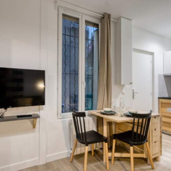Situé au rez-de-chaussée du 34 Rue d'Oran, Paris 18, cet appartement meublé de 17,96m² est idéal pour une personne seule ou un jeune couple. Il se compose de deux pièces (séjour et chambre), d'une cuisine équipée (plaque, hotte, frigidaire, freezer, micro-onde, lave-linge et kit vaisselle), de nombreux rangements, et d'une salle d'eau avec WC. L'appartement est entièrement équipé pour votre confort Profitez également d'un quartier dynamique et pratique, proche de toutes les commodités. Les arrêts de bus 31, 56, N14, N44 se situent à seulemen...