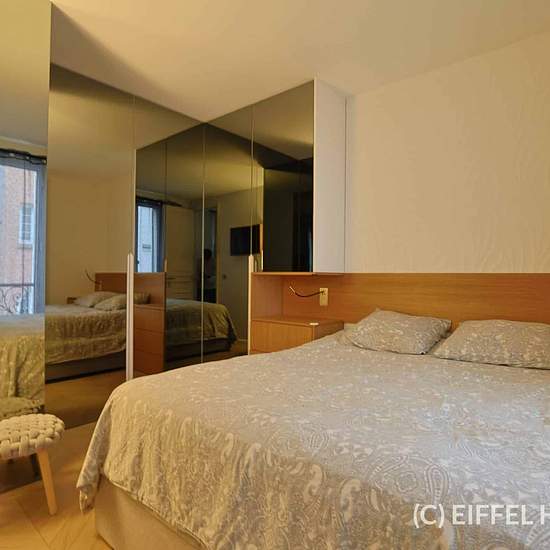 Magnifique appartement loué meublé, intégralement refait à neuf récemment, situé Rue des Roses dans le 18ème arrondissement de Paris, haut de gamme, au 2ème étage sans ascenseur. Proche de nombreux commerces. A proximité immédiate du métro Marx Dormoy (ligne 12). Au 2ème étage sans ascenseur, représentant une superficie de 56m2, l’appartement se compose d’une entrée avec rangements, d’un séjour avec cuisine américaine intégralement équipée (four, plaques, hotte, piano de cuisine, machine à laver le linge, machine séchante…), une chambre par...