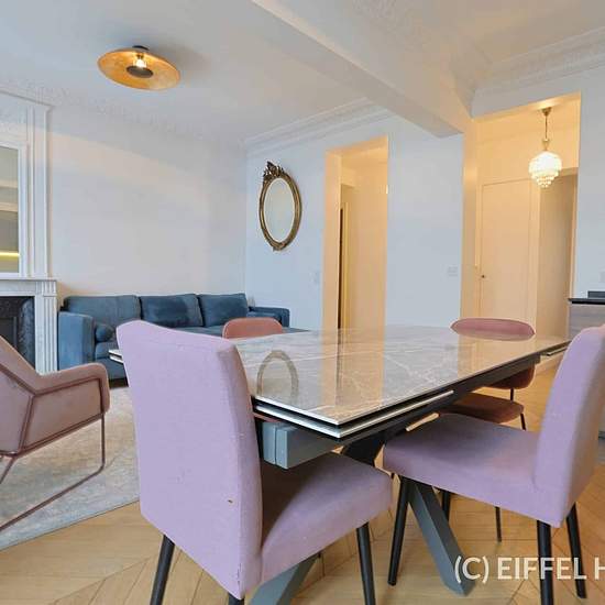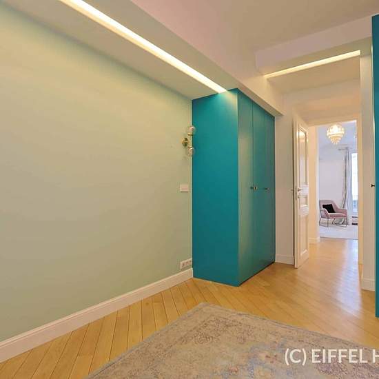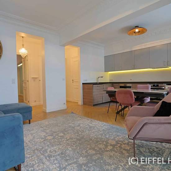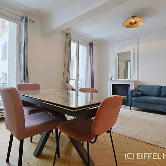 Magnifique appartement familial refait à neuf récemment, loué meublé, situé Rue Ordener dans le 18ème arrondissement de Paris. Proche de nombreux commerces et des stations de métro Jules Joffrin (ligne 12) et Guy Môquet (ligne 13). Situé au 4ème étage avec ascenseur, cet appartement représente une superficie de 61m2 et se compose comme suit : une entrée avec rangements, un séjour lumineux avec cuisine ouverte intégralement équipée (four, plaques, hotte, lave-vaisselle, machine à laver le linge, réfrigérateur…), une chambre parentale avec ra...