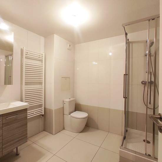 DEUX PIECES de 57,60 m² en Rez-de-Jardin, coté cour intérieure, situé au 13 boulevard Ornano dans un immeuble récent, proche des commerces et transports. Il est composé d'une entrée avec placard, un séjour donnant sur terrasse et jardin privatif, une cuisine US aménagée et semi-équipée, une chambre avec placard et une salle d'eau avec WC. Place de parking en sous-sol. Chauffage et eau chaude collectifs.