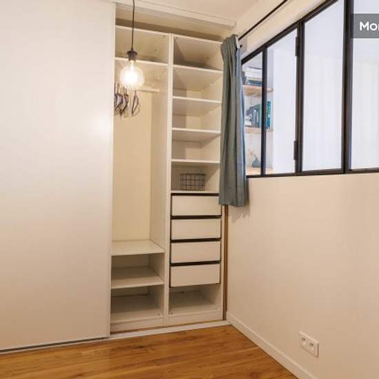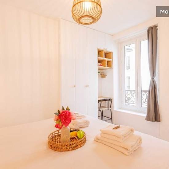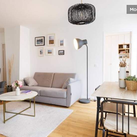 Superb 48m2 flat, located 4 minutes' walk from the Buttes-Chaumont park. The flat is on the 2nd floor without a lift. It comprises: - An open-plan kitchen, fully equipped and functional: fridge, hob, coffee machine, toaster, kettle, oven, dishwasher, washing machine, etc. - A lounge with sofa and TV - Bedroom with double bed - A dressing room - Bathroom with shower - Separate WC - Storage space - TV and broadband internet - Bed linen and towels provided You'll have access to the whole flat, so you'll feel right at home. We are available at a...