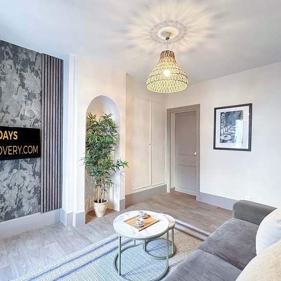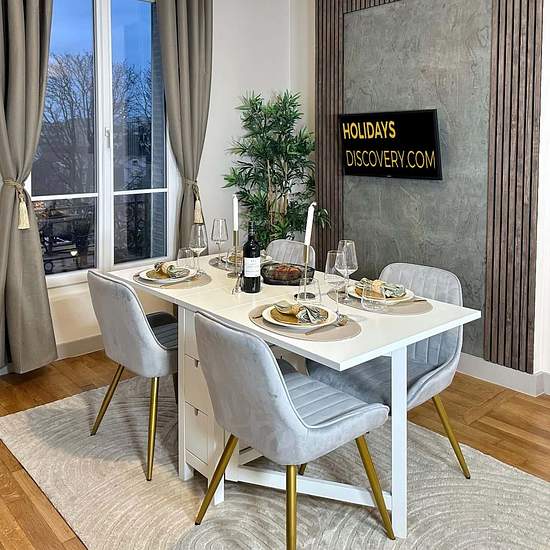 EN Enter a realm of sophistication and coziness at our stylish apartment. Embrace the authentic Parisian atmosphere with a touch of modern elegance, featuring contemporary decor and charming exposed beams. This is your ideal retreat in Paris. Dive into the essence of Paris with our captivating apartment, blending timeless tradition with modern comforts. Reserve your tranquil Parisian sanctuary now and experience the magic of the City of Light! The Space: Spacious Living Room: Relax in our spacious living area, featuring a cozy sofa bed that'...