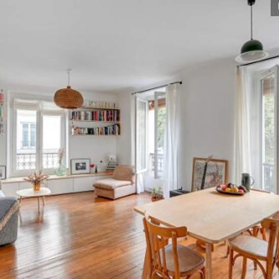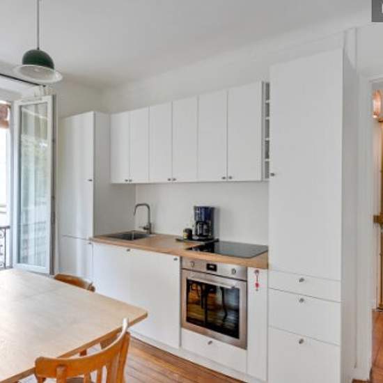 Devenez voisins avec le célèbre parc des Buttes Chaumont en louant cet appartement de 2 pièces situé square Bolivar dans le 19ème arrondissement de Paris. Montez au 1er étage avec ascenseur, équivalent à un étage plus élevé car l'immeuble est surévelé, pour découvrir ce bien de standing. D'une surface de 41 m2, Bolivar est un appartement disponible pour des locations allant de 1 à 10 mois. La grande pièce à vivre lumineuse et confortable vous offre un espace de détente idéal avec un coin salon et une cuisine aménagée ouverte autour d'une tab...