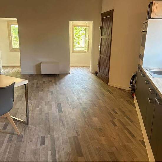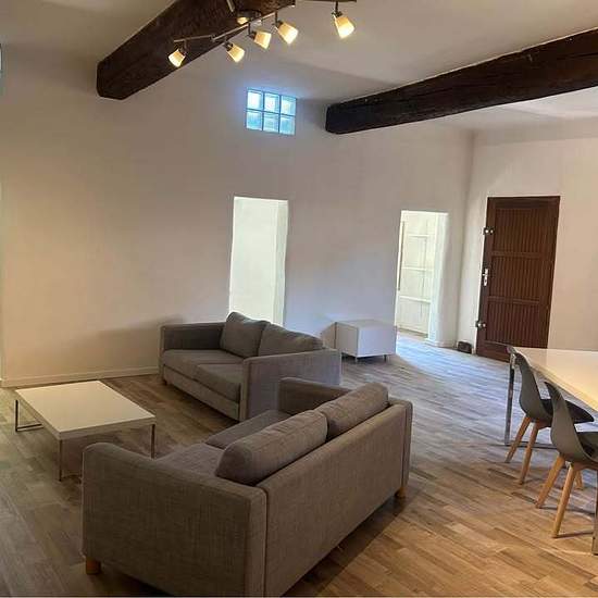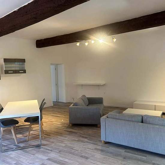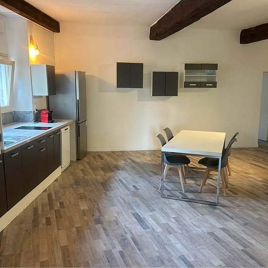 Loue dans centre village un appartement de type 2 de 74 m2 refait à neuf (électricité plomberie peinture sol cuisine salle de bain) Une très grand pieces à vivre avec 3 jolie Alcôves très lumineux, une très grand chambre qui donne dans la salle de bain en carrelage de Bali. L appartement est loué meublé comme sur les photos Loyer 850€ hors charges Disponible à compter du 16 décembre 2025 Vidéo disponible via whatsapp où messenger Ps: possibilité de faire un coin nuit dans la pièce à vivre qui fait plus de 45m2 A voir !!!