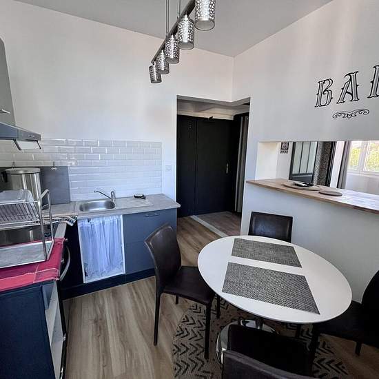 Bel appartement T2 meublé situé au 1er étage d’une résidence.Il se compose d’une petite entrée donnant sur le séjour avec coin cuisine équipée (réfrigérateur, plaque de cuisson, micro-ondes, hotte).Le logement comprend également une chambre, une salle d’eau avec WC, ainsi qu’un WC séparé. Petit balcon. Équipements : machine à laver, télévision.Chauffage électrique.Disponible immédiatement. Honoraires de 348 € TTC à la charge du locataire comprenant 77 € TTC pour l'état des lieux. Loyer de base 550 €/mois. Provision sur charges 20 €/mois, rég...