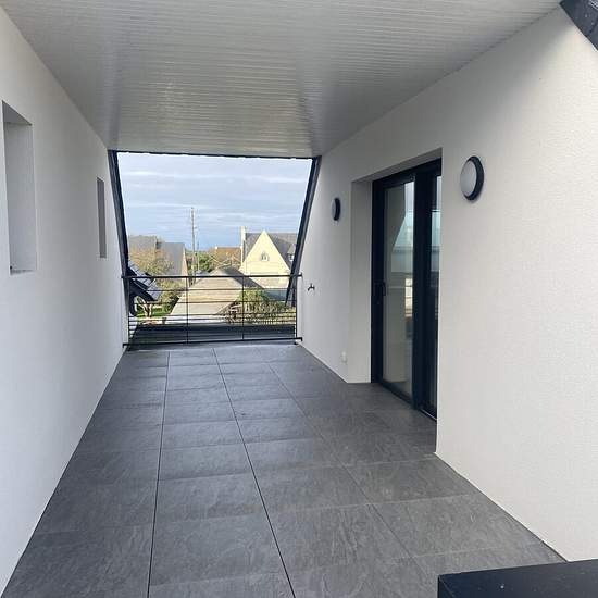 A louer au coeur du bourg de Plouarzel, appartement T2 neuf avec terrasse. Pièce de vie avec cuisine US aménagée, chambre, salle d'eau. Espace extérieur de 18 m2. 1er et dernier étage. Facilité de stationnement. Honoraires de 280 € TTC à la charge du locataire comprenant 130 € TTC pour l'état des lieux. Loyer de base 650 €/mois. Dépôt de garantie 650 €. Non soumis au DPE. Les informations sur les risques auxquels ce bien est exposé sont disponibles sur le site Géorisques : georisques.gouv.fr.