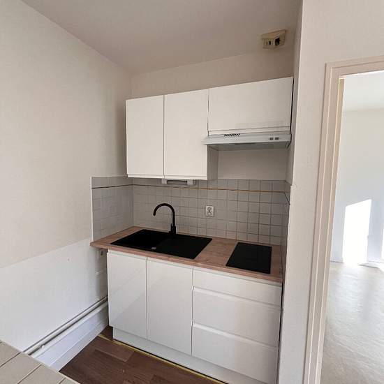 Bel appartement lumineux dans un secteur calme de 34 m², comprenant une entrée avec placard, un séjour avec cuisine ouverte aménagée et équipée neuve avec plaque à induction deux feux, meubles hauts et bas et une hotte, une chambre, une salle de bains et WC. Disponible de suite.