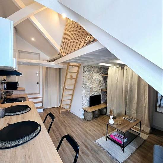 Appartement de 20 m² à louer sur Pontoise A louer en bail mobilité de 1 mois à 10 mois pour étudiants ou travailleurs en déplacement. Studio meublé en plein centre ville, à 2 pas de la place de l'hôtel de ville. À 5 min de la gare (RER C / Ligne J – Paris Saint-Lazare en 40 min) -Proche université et grandes écoles de Cergy Pontoise. Refait entièrement à neuf avec matériaux de qualité. Studio meublé avec lit en mezzanine, au calme, dans une petite copropriété bien entretenue. • Entièrement équipé : lit double avec draps, TV, cuisine avec pla...