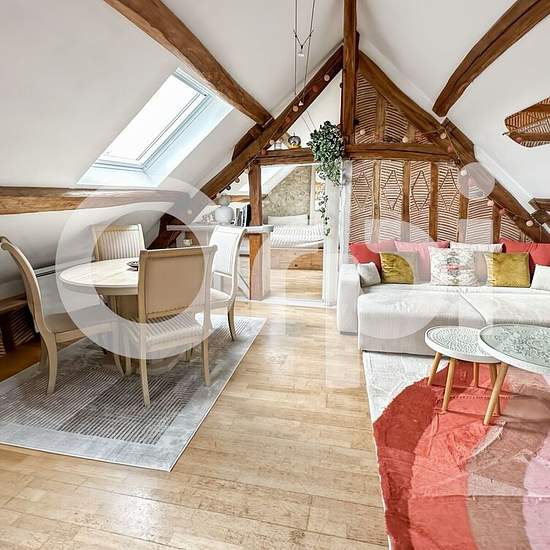 Appartement F2 meublé de 39m². Dans petit village calme, à 5 min de l'accès à l'autoroute, charmant appartement F2 MEUBLE de 70m² au sol : entrée sur escalier, séjour avec cuisine ouverte équipée, une chambre et salle de bains. Une place de parking. Eau froide comprise. Libre.