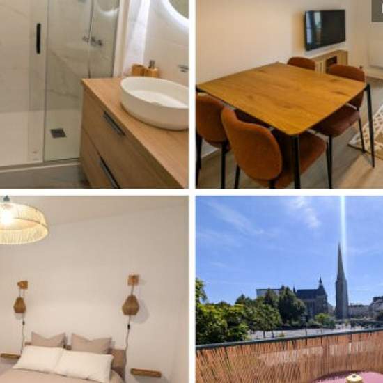 Bienvenue au Terra Redon, un appartement de 30 m² fraîchement rénové en plein cœur du centre-ville de Redon, situé au 1er étage (sans ascenseur) d'un petit immeuble calme. Idéal pour vos séjours professionnels, missions temporaires ou formations, ce logement allie confort, fonctionnalité et emplacement central. Les atouts •Logement entièrement rénové en octobre 2025 •Parking gratuit à 3 min à pied •Local vélo sécurisé •Balcon avec vue •Linge et serviettes fournis •Produits ménagers et lessive inclus Accès rapide Rennes, Nantes, Vannes ou Sai...