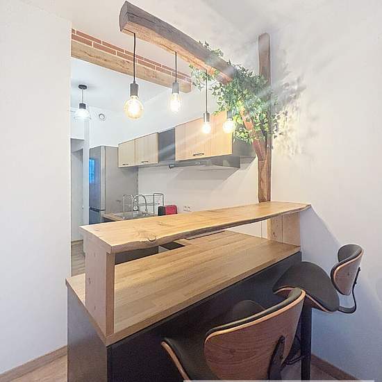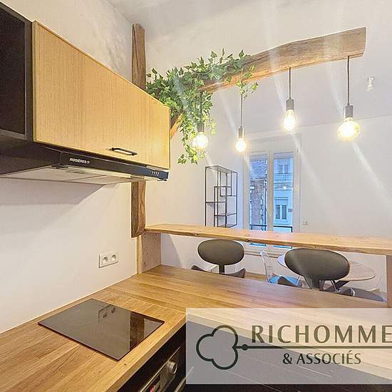 Rue du Docteur Thomas - T2 meublé - Dans une petite copropriété entretenue et sécurisée, nous vous proposons ce charmant T2 meublé situé au second étage sans ascenseur. Il se compose d'un salon/salle à manger lumineux, aménagé avec un canapé convertible, une table et des chaises, ainsi que d'une cuisine aménagée et entièrement équipée comprenant un coin repas snack (réfrigérateur, plaques de cuisson, lave-vaisselle, hotte, petit électroménager et vaisselle diverse). La chambre dispose d'un placard de rangement, d'un lit double et d'un bureau...
