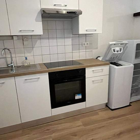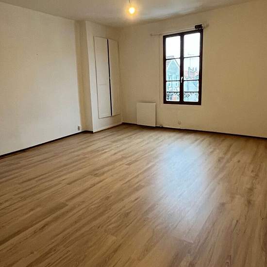Appartement À Louer. Duplex offrant séjour ouvert sur cuisine amenagée et équipée, salle d'eau, wc au 2éme étage grande chambre. Cour commune. Chauffage éléctrique.