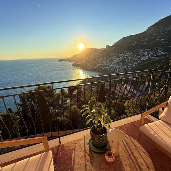 We invite you to discover this magnificent 2-room apartment, with an area of 42 m2, very bright and offering a breathtaking view of the sea and the Principality of Monaco. Bathed in light, it comprises a living room with an open-plan kitchen, a large bedroom, and a shower room with WC. Each room opens onto a balcony with panoramic sea views. The apartment is located in a quiet and sought-after area, on a high floor of a luxury condominium. Communal parking within the building. A cellar and a closed garage complete this property. This propert...