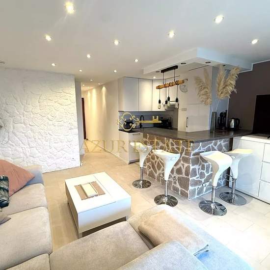 Located in the center of Carnoles, just steps from the shops, on the top floor with an elevator, double glazing, air conditioning, all utilities included (hot water, cold water, heating included), it comprises: an entrance, a living room with a fitted open kitchen, a bedroom, a shower room, a separate toilet, a loggia, a terrace and a private parking space in the basement. Show phone number