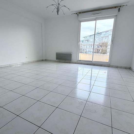 Appartement À Louer de type F2 refait en peinture à neuf. Magnifique appartement dans un immeuble de standing au coeur des commerces. A 7 minutes à pieds de la gare, 2 pièces avec entrée, séjour/cuisine aménagée d'un peu moins de 25 m² donnant sur un beau balcon carrelé, une chambre avec placard, une salle de bains aménagée, wc séparé. Un parking privatif Disponible immédiatement....
