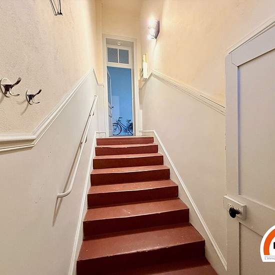 A COTE DE LA GARE - Boulevard de l'Yser Grand appartement Atypique F2 de 45,98 m², en rez-de-chaussée, comprenant : entrée, séjour lumineux avec salle à manger exposé SUD, cuisine aménagée et équipée (hotte, plaques de cuisson), 1 chambre en contre-bas, salle de douches. Chauffage individuel électrique. Disponible dès maintenant.