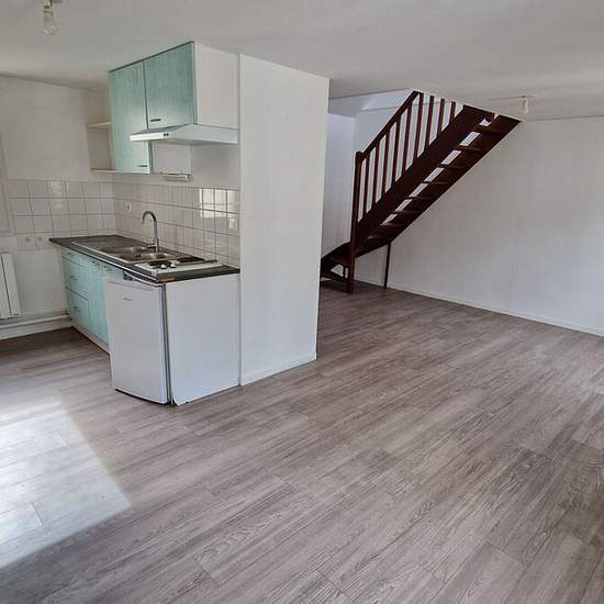 Au dernier étage d'un immeuble situé rue Beauvoisine cet appartement en duplex de 48m² comprend une entrée avec placard, un séjour avec une cuisine équipée et aménagée, une mezzanine, une chambre avec placard, une salle de bain puis des WC séparés. Profitez de la proximité des transports et des commerces en bas de l'immeuble. Loyer: 580, charges: 60Euro, caution: 580, honoraires: 532.51Euro. Disponible dés maintenant.