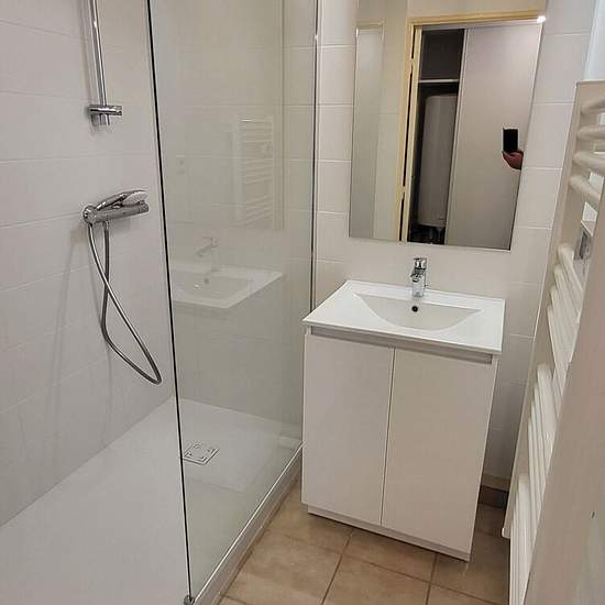 Appartement À Louer. Un appartement de Type 2 en très bon état, à 600 mètres du marché de Royan, au premier étage sans ascenseur. 1 chambre avec un placard Une salle d'eau neuve Cuisine aménagée Double vitrage, chauffage individuel électrique, place de parking couverte Libre de suite