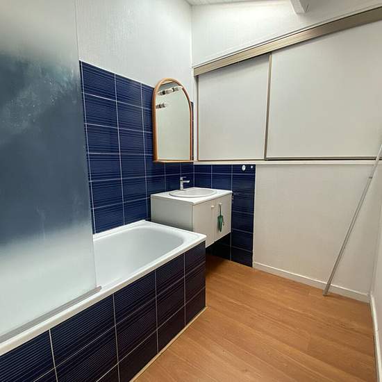 Un appartement duplex de type F2 + bureau aperçu mer proche Garden Tennis comprenant : En rez-de-chaussée : Séjour ouvrant sur balcon, kitchenette aménagée, une petite chambre avec placard, wc séparé. A l'étage : Palier avec placard, une chambre mansardée, salle de bains avec placard. Place de parking - Chauffage électrique.