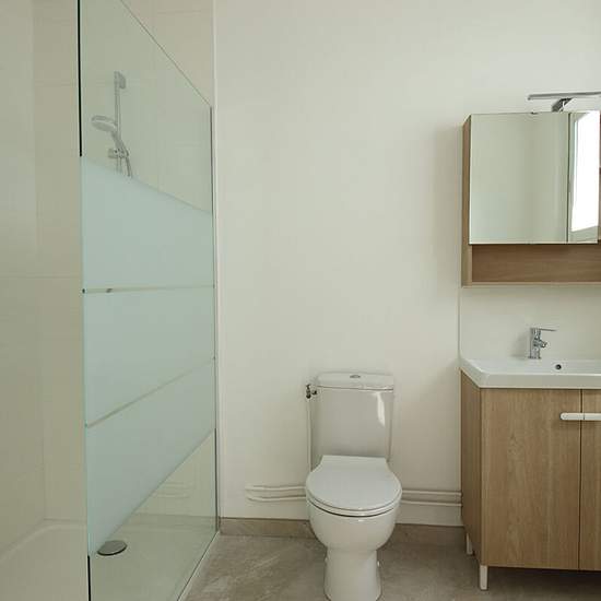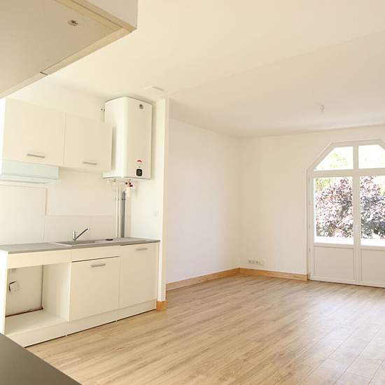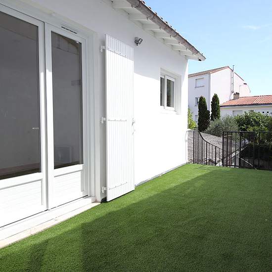 Appartement Royan F2 refait à neuf, au 1er étage sans ascenseur comprenant : Séjour, cuisine ouverte aménagée, 1 chambre avec placard, salle d'eau avec WC et belle terrasse. Chauffage électrique.