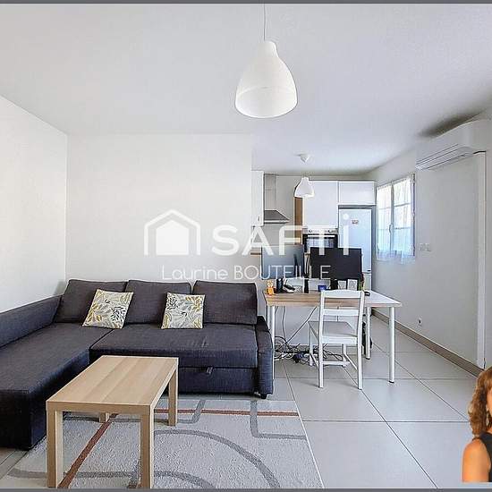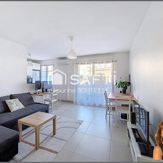 Dans une résidence standing sécurisée de 2009, charmant T2 de 39 m² au rez-de-chaussée avec terrasse et place de parking privative. Cet appartement en parfait état, loué meublé, comprend une pièce de vie lumineuse et climatisée avec cuisine américaine neuve (plaques-four-hotte et lave-vaisselle + emplacement prévu pour votre lave-linge, vaisselle et nécessaire de cuisson), table et chaises de salle à manger, une terrasse, une chambre spacieuse avec lit 140x190, couette et oreillers, tête de lit, 2 chevets et armoire, une salle d'eau avec wc....