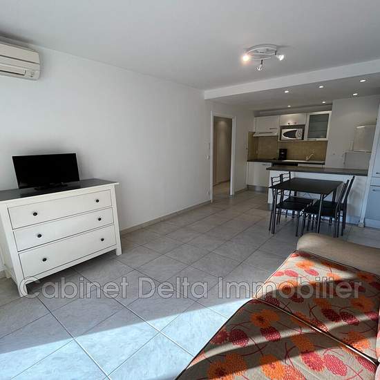 Le Cabinet Delta Immobilier vous propose à la location annuelle MEUBLEE à SANARY SUR MER, en centre-ville, dans une résidence sécurisée et avec ascenseur, au 1er étage de l'immeuble, un très bel appartement T2 composé d'une entrée avec placard, une salle d'eau, un WC séparé, une chambre avec climatisation, une cuisine équipée ouverte sur le salon avec climatisation et une belle terrasse ensoleillée. Mode de chauffage : climatisation réversible dans salon et chambre. Résidence avec ascenseur. Garage box fermé en sous-sol de la résidence. Disp...