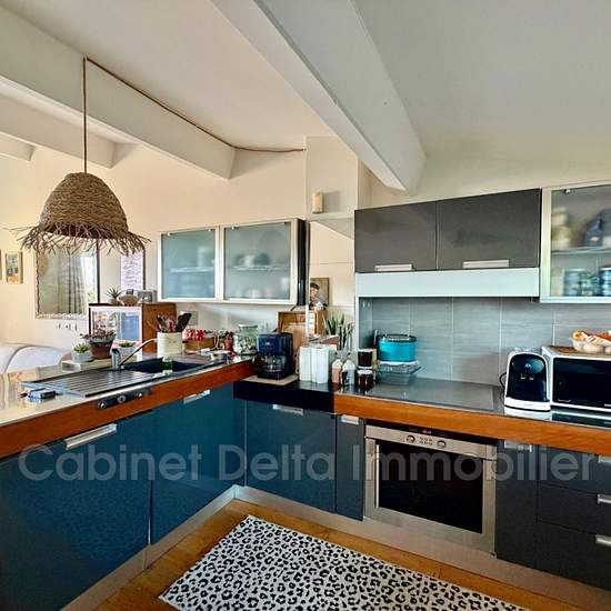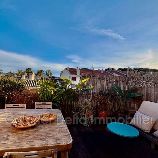 Cabinet Delta offers for rent this stunning duplex apartment in the town centre of Sanary‑sur‑Mer, in a quiet, residential area close to the port. Located on the 3rd floor with elevator. Two parking spaces. It comprises: on the ground floor: an entrance with large cupboards, a WC, a laundry room, a master suite with bedroom / dressing room / bathroom with bathtub and shower. On the 1st floor: an open-plan fitted and equipped kitchen, a living room, a dining room and a Tropezian roof terrace. Heating: reversible air-conditioning. Information ...