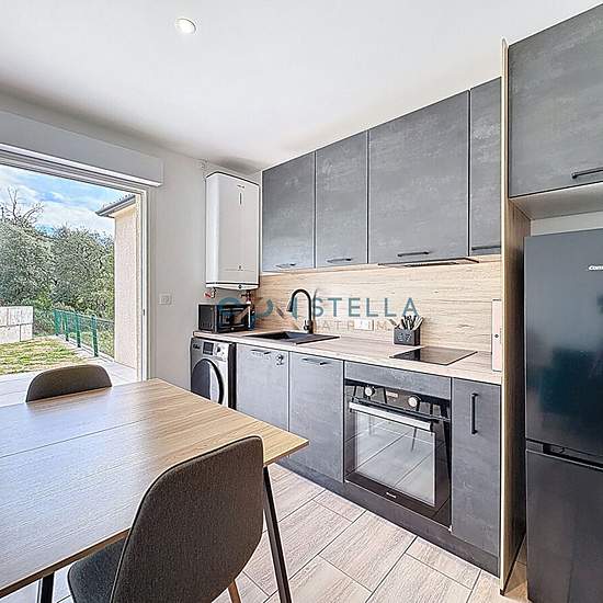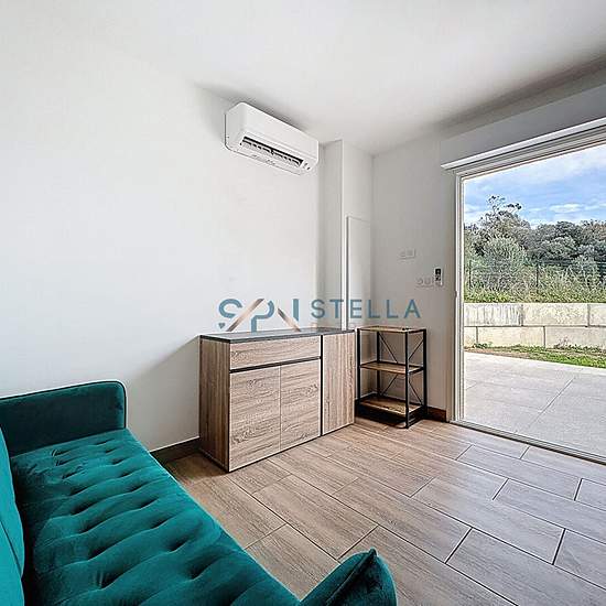 L'agence Stella Patr'Immo a le plaisir de vous proposer ce charmant T2 entièrement neuf, situé dans la plaine de Sarrola, dans un environnement calme et à moins de 10 minutes de Baléone. Il s'agit d'un joli appartement en haut de villa bénéficiant d'un accès totalement indépendant. L'entrée donne sur un séjour climatisé avec cuisine ouverte entièrement équipée, comprenant un lave-vaisselle et une machine à laver également. Le logement dispose d'une chambre ainsi que d'une belle salle d'eau moderne avec WC. Ce T2 meublé offre de belles presta...